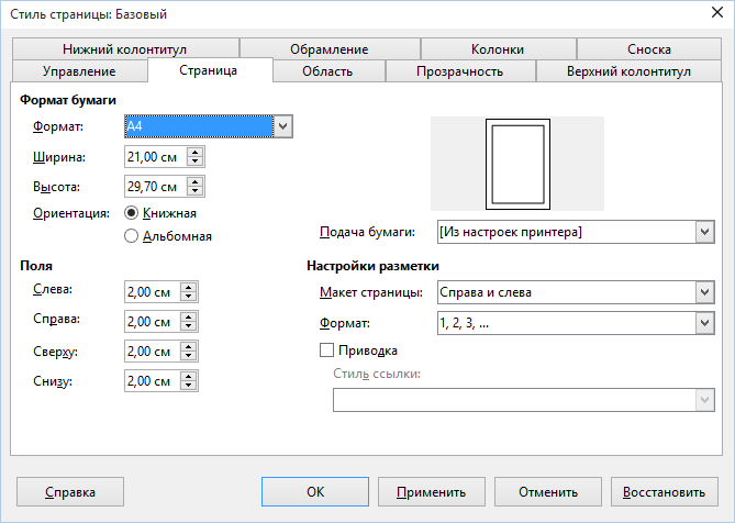 - Открываем созданный документ. Если у вас фотобумага 10х15 задаем соответствующий размер страницы. Открываем меню «Формат -> Страница…». В открывшемся окошке задаем формат бумаги, ориентацию и поля. Если у вас фотобумага формата А4 — можно ничего не делать. Я выбрал формат страницы А6 (10х15) и поля в 1 см.