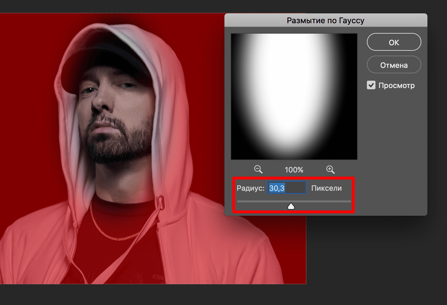 В открывшемся окне, выбираем радиус размытия в пикселях. Уровень размытия выставляем визуально, в зависимости того, какой результат вы желаете получить. Нужно понимать, что при выборе большой величины размытия, изображение может потерять свою естественность.