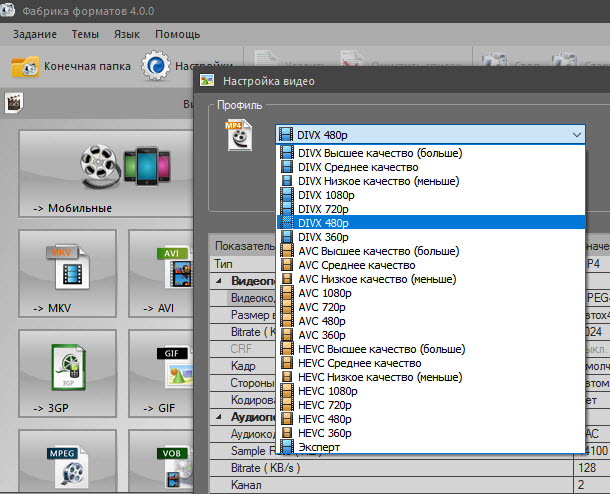 - Также в программе можно выбрать как и свой формат, так и применить те, которые уже установлены.