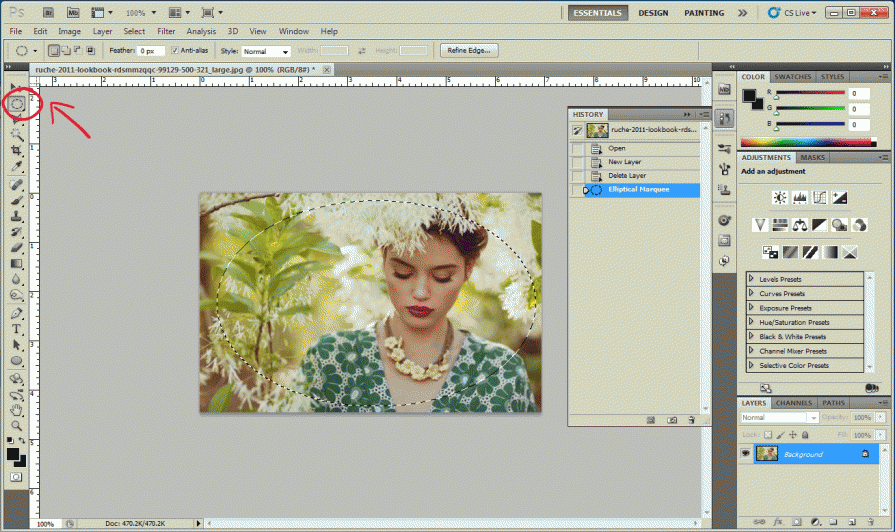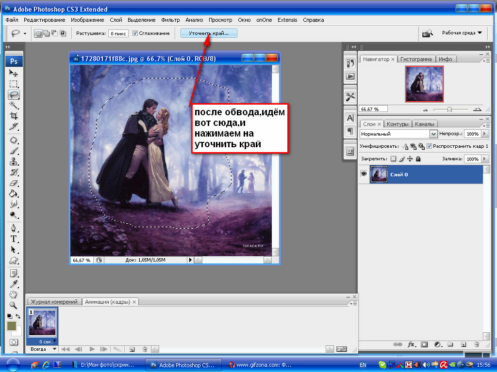 Затем, с помощью этого инструмента, выделите саму фотографию, чтоб она выглядела таким образом: