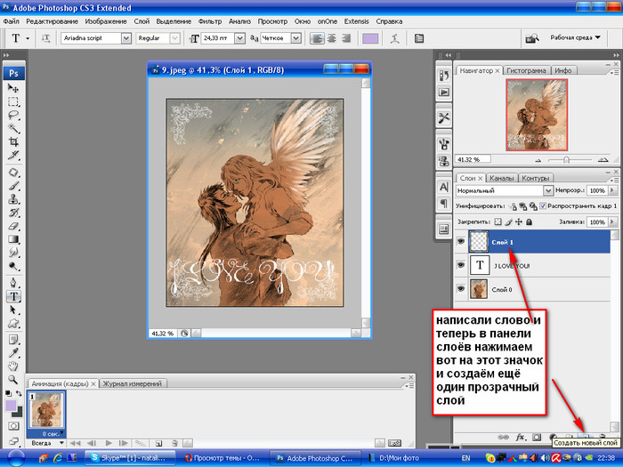 Сделайте активным Слой 2 и зайдите в параметры наложения.