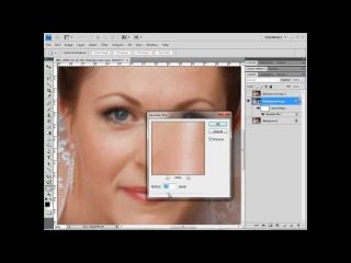 В окне фильтра поставим такие значения, чтобы проходимость мелкая текстура кожи, но при этом крупные дефекты не были видны.
