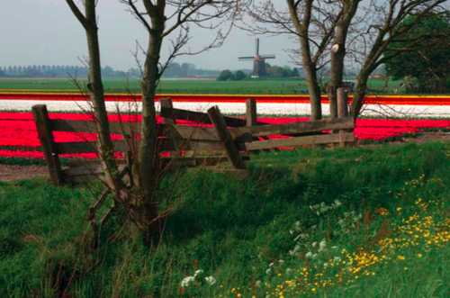 «Чтобы повыгоднее сфотографировать поле тюльпанов с мельницей, я подошел ближе к развилке деревьев и, как видно из следующих снимков, получил узнаваемый голландский пейзаж с морем тюльпанов и мельницей вдалеке». — Иллюстрация из книгиЕсли вы ловите себя на том, что «танцуете» вокруг объекта, меняя ракурс и слегка корректируя фокусное расстояние объектива, добро пожаловать в мир творческой фотографии!