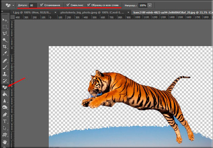 - Щелкните инструмент «Волшебная палочка» на панели инструментов.