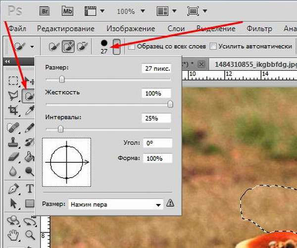 Если кисть выбирает недостаточно, используйте больший размер кисти и увеличьте радиус.