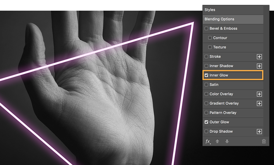 Добавление стиля слоя «Внешнее свечение» (Outer Glow)