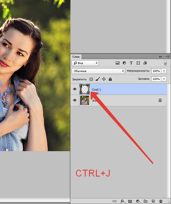 Давайте создадим его копию, над которой и будем работать. В меню, расположенном в верхней части экрана, откройте Layer, выберите New, затем Layer Via Copy. Это можно сделать и быстрее, просто нажмите Ctrl + J (Win) / Command + J (Mac). Оба способа одинаково эффективны: