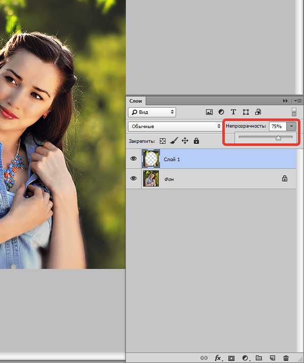 Если яркость кажется вам слишком высокой, можно снизить непрозрачность нового слоя. Эта опция, Opacity, находится прямо напротив опции Blend Mode в верхней части панели слоев. Чем ниже вы зададите значение непрозрачности, тем менее интенсивным будет этот слой. Но я оставлю оригинальное значение, равное ста процентам: