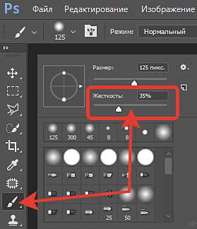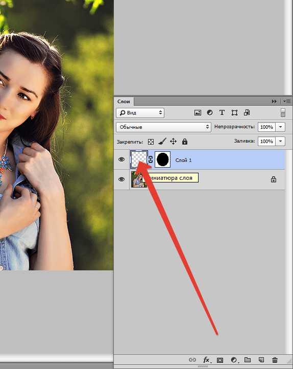 Теперь возьмите Инструмент Ластик — Eraser Tool (Е), выберите мягкую круглую кисть, увеличьте ее размер и просто сотрите часть черного слоя в центре фото.