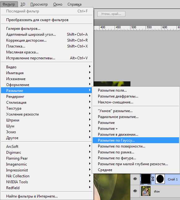 Также вам нужно будет затемненный фон размыть. В этом вам поможет меню: «Фильтр – Размытие — Размытие по Гауссу»