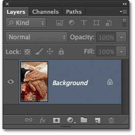 Для начала давайте позаботимся о том, чтобы при работе наш оригинальный кадр остался невредимым. На панели слоев мы видим, что слой с оригинальным снимком называется Background Layer, а других слоев пока нет: