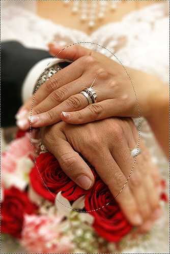 Открываем обрабатываемый снимок в Adobe Photoshop. Используя инструмент «Овальная область» выделяем нужный нам элемент, который планируем выделить на фотоснимке.