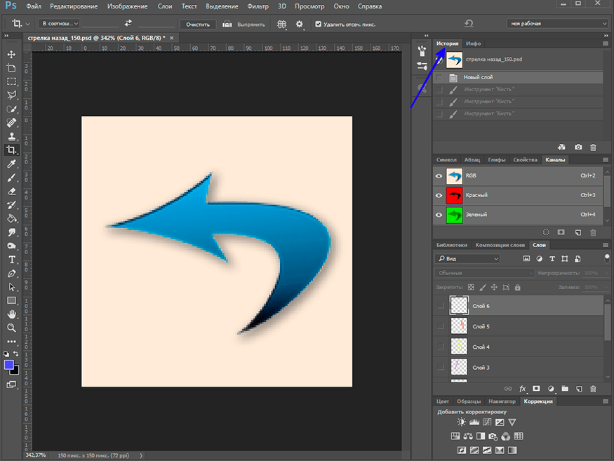 Неудачные действия (если вдруг был выбран неподходящий размер инструмента) можно отменить нажатием сочетания клавиш Ctrl + Alt + Z.