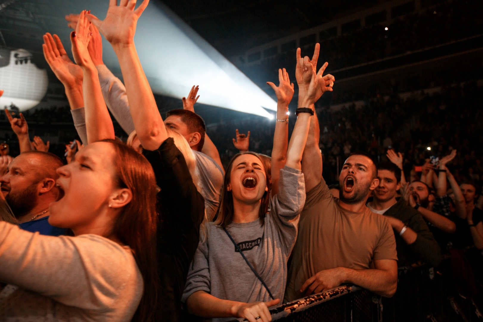Разумеется нельзя отправиться на концерт и провести все время, развернувшись к сцене. Ваша задача, как фотографа, передать не только то, что происходило непосредственно перед публикой, но передать общую атмосферу, царящую в зале. Поэтому иногда как минимум разворачивайтесь к толпе и делайте снимки фанатов. Как правило, люди охотно позволяют себя снимать, а в порыве радости от полученных впечатлений, частенько могут взаимодействовать с фотографом и улыбаться или показывать какие-нибудь знаки в камеру. Когда они не позируют, вы и вовсе можете поймать чистейшие искренние эмоции. Не забывайте делать кадры, где видно и артиста, и публику, поскольку это и есть те отношения, на которых строится мероприятие.