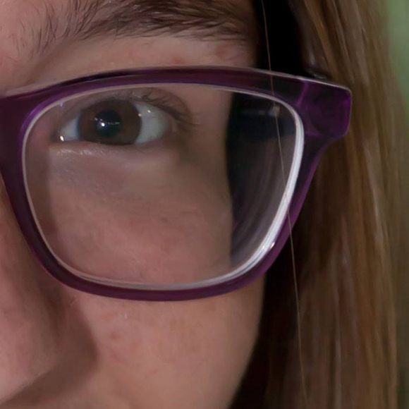 Увеличьте объект. На этом изображении у него странные фиолетовые блики на очках.