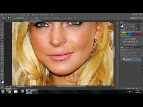 Осталось убрать изъяны нашего фона. Небольшие пятнышки можно легко удалить с помощью инструмента Точечная восстанавливающая кисть (Spot Healing Brush). Во вкладке со слоями выбираем фоновый слой, кликаем по Т