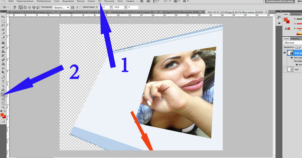 - Выпрямление фотографий с помощью инструмента «Линейка» и команды произвольного поворота изображения