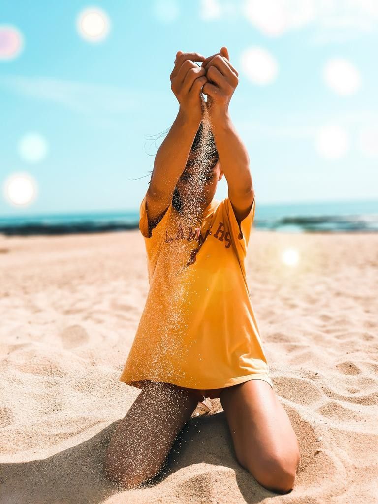 Если вам хочется креативную фотографию, но у вас нет никакого инвентаря – не переживайте! Для этого есть целый пляж с песком. Просто найдите небольшую палочку или используйте палец в качестве «ручки». Нарисуйте какую-то фигуру – сердце, звезды или солнце. Можете даже совместить рисунок на песке с собой. Можно также написать дату, название места, где вы находитесь или просто любимую цитату.