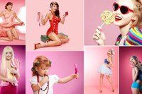 Барби. С помощью кукольного макияжа, розовых оттенков в одежде, разнообразных ленточек и бантиков получается самый что ни на есть девочковый образ для фотосессии.