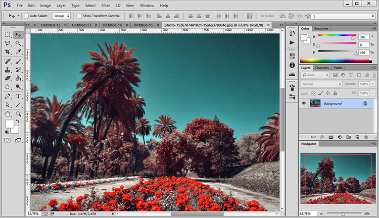 С другой стороны, Photoshop максимизирует пространство вашего изображения и минимизирует пространство для инструментов, что затрудняет поиск некоторых основных инструментов.