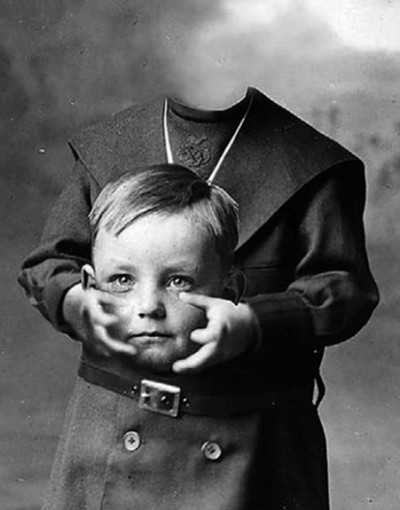 Одним из самых странных жанров фотографии был викторианский безголовый портрет, или просто безголовый портрет. В конце XIX века британские фотографы завели моду комбинировать негативы и делать «курьезные» фотографии, на которых модель как будто держит свою голову в руках