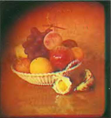 Проектор «Кромскоп» Фредерика Айвиса применялся для проецирования изображений (корзина с фруктами), полученных аппаратом, позволяющим размещать все три негатива на одной фотопластинке. Светофильтры и зеркала «Кромскопа» объединяли частичные позитивы в одно совмещенное изображение