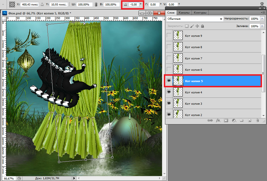 Зажимаем слой с сайгаком на панели слоев (бедное животное, опять мы его зажимаем) левой кнопкой мыши, после чего перетаскиваем его вниз так, что бы он оказался ниже льва.