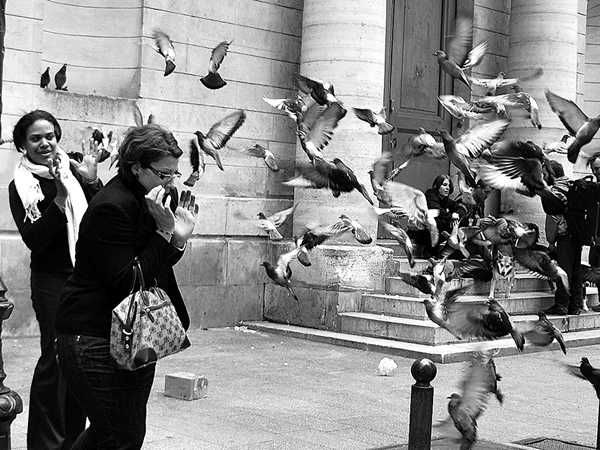 Описание: На главной улице Парижа всегда огромное количество голубей. Но, неожиданно вспорхнув, они все же могут застать врасплох любого парижанина .