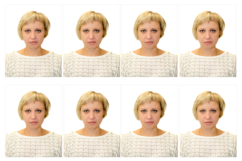 Задача фотографа проследить, чтобы плечи располагались на одном уровне, а голова не была наклонена в сторону. Все фото на документы делаются анфас, без поворота головы. Выражение лица должно быть максимально нейтральным.