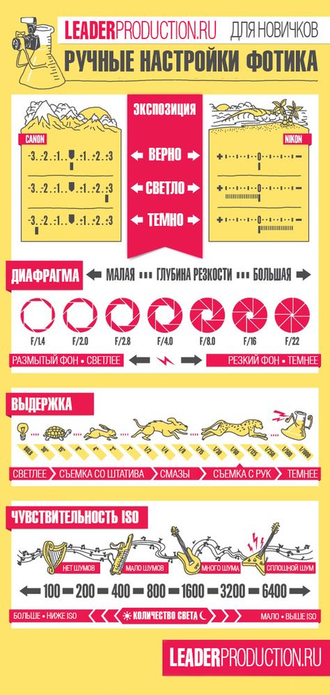 Увеличение ISO особенно актуально для фотосъемки в темных помещениях, например, в концертных залах. Также светочувствительность стоит увеличить, если приходится снимать при недостаточном количестве света движущиеся объекты; - Диафрагма. Максимальные значения этого параметра очень спасают при недостаточном количестве света. Например, если объектив имеет диафрагму (f) 1.4-1.8, можно получать качественные снимки даже в темных помещениях. Но стоит учитывать, что при максимально открытой диафрагме теряется глубина резкости изображения. Четкими будут лишь главные объекты, а все, что находится сзади, окажется размытым. Чтобы снимать при больших значениях f фотокамеру лучше перевести в режим «Приоритет диафрагмы». Так фотограф сможет регулировать этот параметр по своему усмотрению. При больших значениях f проще снимать движущиеся объекты, так как можно устанавливать более короткую выдержку. Если есть необходимость регулировать оба параметра, необходимо перейти в ручной режим;
