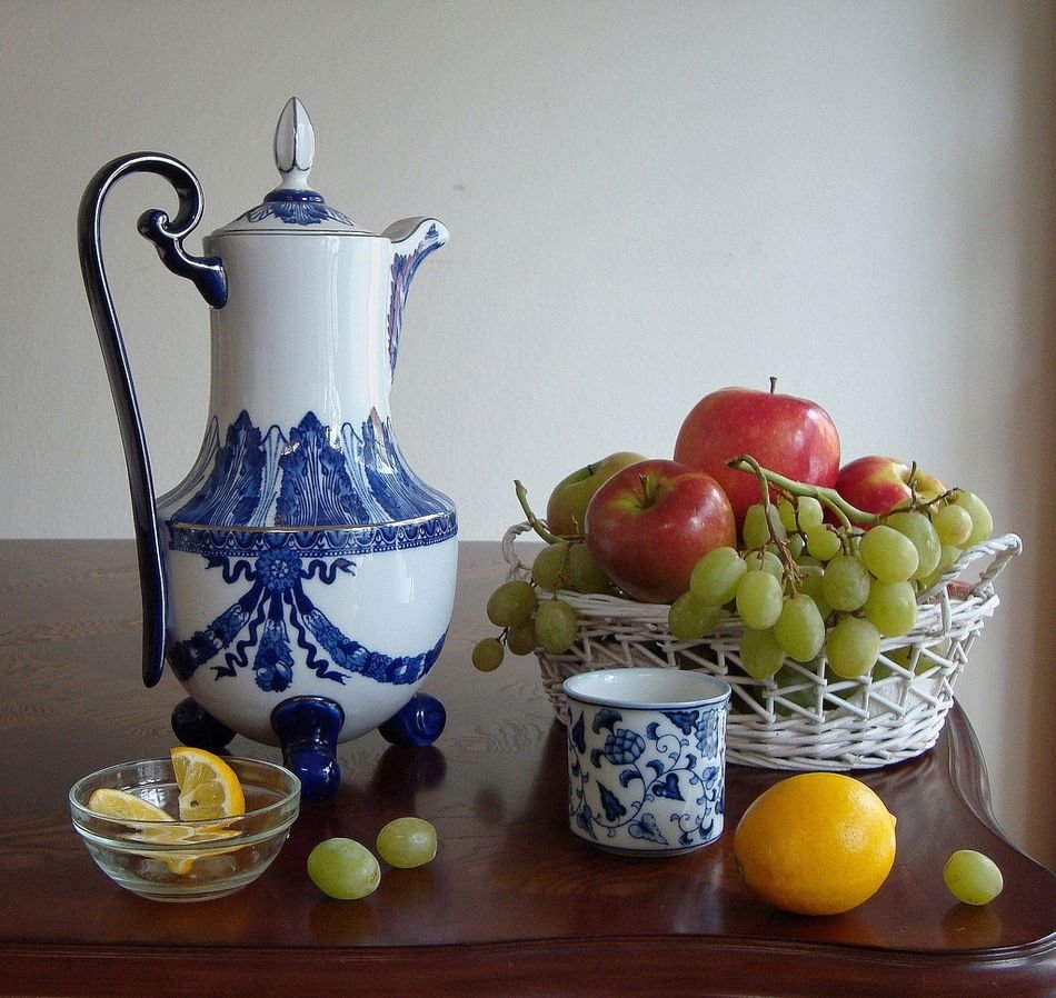 Натюрморт, снятый при естественном освещении от окна в домашней фотостудии. Съемка на зеркальную камеру Nikon D5100 KIT 18-55 VR со следующими настройками: выдерка 1.6, апертура F/8.0, ISO 100, ФР=32 мм.