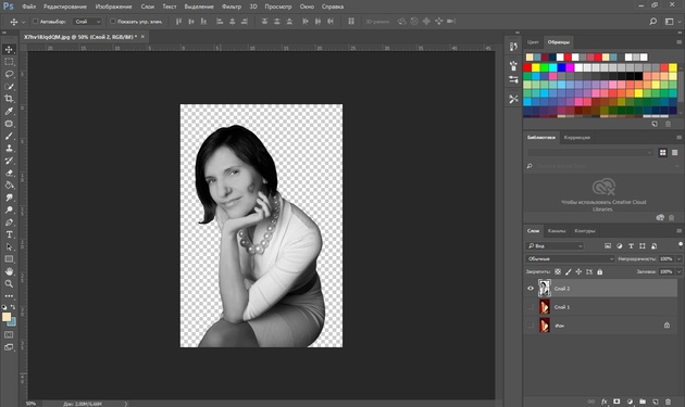 После этого достаточно нажать сочетание клавиш Ctrl+C, Ctrl+V, чтобы отделённое от фона изображение девушки было перенесено на прозрачный слой.