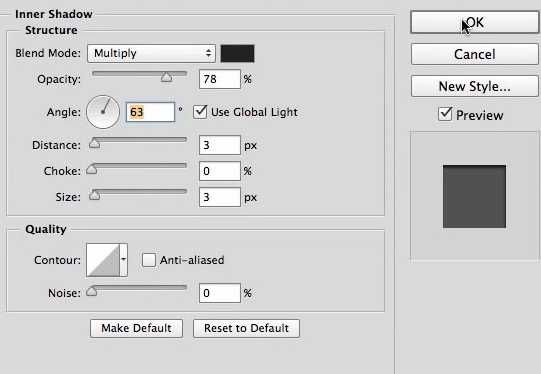 Также, автор советует обратить внимание на оставшийся контур вокруг модели. Его можно будет затемнить при помощи LayerStyle (Стиля слоя) InnerShadow (Внутренняя тень) с указанными на скриншоте настройками.