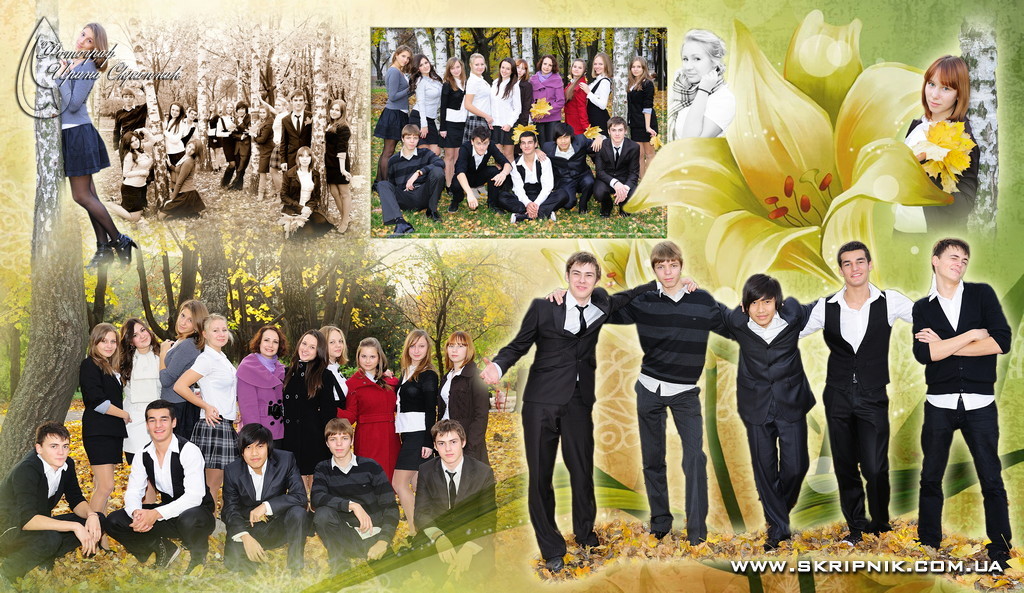 - фотосъемка для книги: индивидуальные портреты, групповые портреты, неформальные фотографии учеников с друзьями и одноклассниками