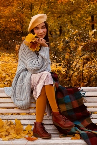 Изюминкой осеннего сезона, безусловно, станет красивый длинный шарф. Интересно на фотографиях будут смотреться милые вязаные шапочки, фетровые шляпки и стильные беретики.