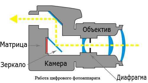 Перед тем, как новый снимок окажется в нашей коллекции, механизм фотоаппарата производит следующие действия: маленькое зеркальце приподнимается, что позволяет свету проникнуть за него и направиться не в видоискатель, а прямо в центр конструкции — матрицу.