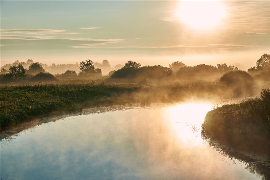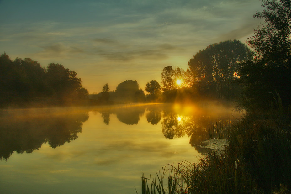Летний рассвет — тёплый и туманныйРеки, моря и озера