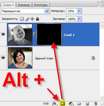 Π‘ Π·Π°ΠΆΠ°ΡΠΎΠΉ ΠΊΠ»Π°Π²ΠΈΡΠ΅ΠΉ Alt ΠΊΠ»ΠΈΠΊΠ°Π΅ΠΌ ΠΏΠΎ ΠΊΠ½ΠΎΠΏΠΊΠ΅ Add layer mask (ΠΠΎΠ±Π°Π²ΠΈΡΡ ΠΌΠ°ΡΠΊΡ ΡΠ»ΠΎΡ) Π²Π½ΠΈΠ·Ρ ΠΏΠ°Π½Π΅Π»ΠΈ ΡΠ»ΠΎΠ΅Π².