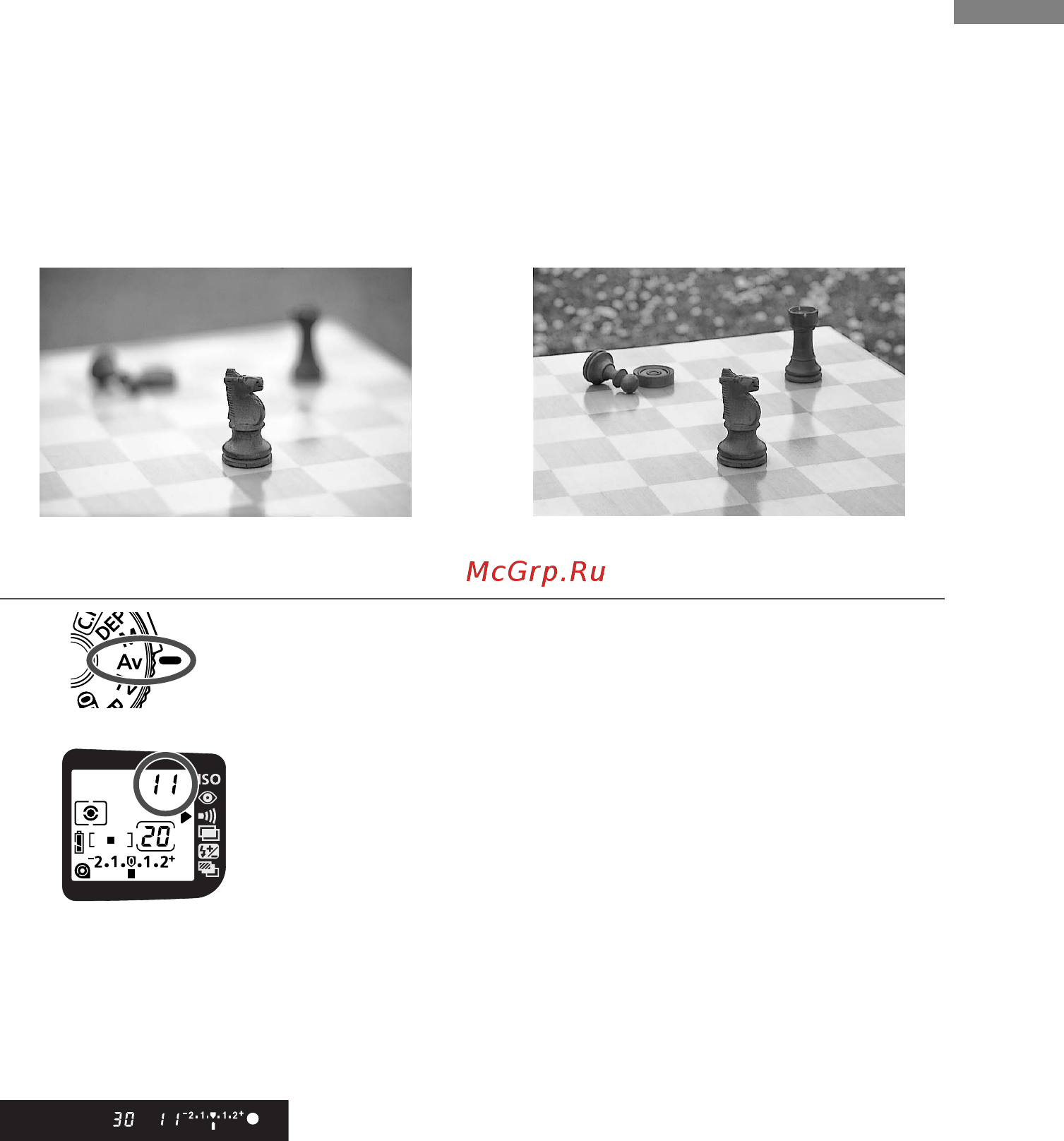 МАЛАЯ ГЛУБИНА ПОЛЯ f / 1,4 f / 2 f / 2,8 f / 4 f / 5,6 f / 8 f / 11 f / 16 / f / 22 f / 32 ГЛУБОКАЯ ГЛУБИНА ПОЛЯ