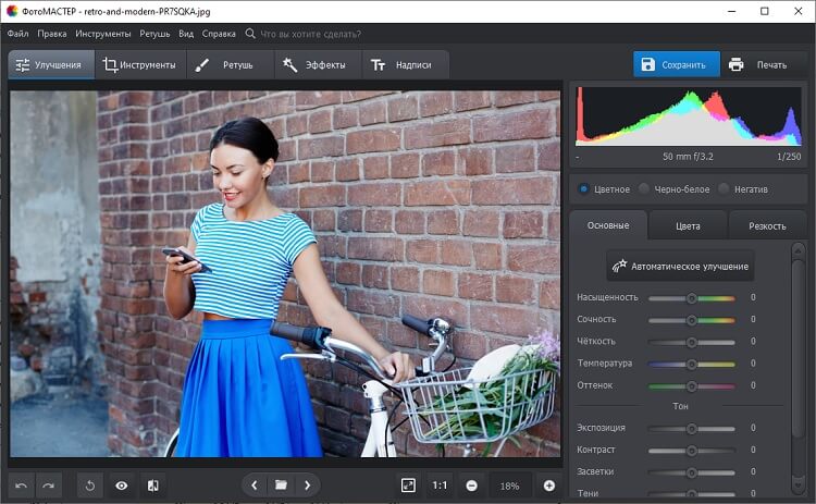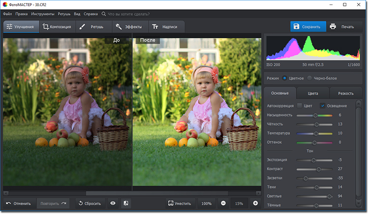 Отдельно стоит отметить и неоспоримое достоинство бесплатного фоторедактора — это широкий перечень различных функций для работы с коррекцией цвета и балансом белого, позволяющих довести любой снимок до совершенства. При этом стоит отметить, что пользоваться всем доступным инструментарием возможно даже с минимальными познаниями в области фото.
