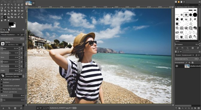 GIMP предлагает внушительный инструментарий. Внутри легко найти все привычные средства, включая кисти, цветокоррекцию, а также инструменты копирования, выделения и улучшения.