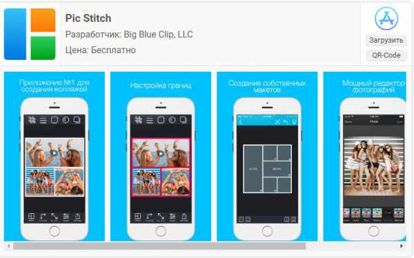 Еще одно удачное приложение от разработчика Big Blue Clip называется Pic Stitch. Оно популярно благодаря простоте интерфейса и большому количеству встроенных макетов, число которых превышает две сотни.