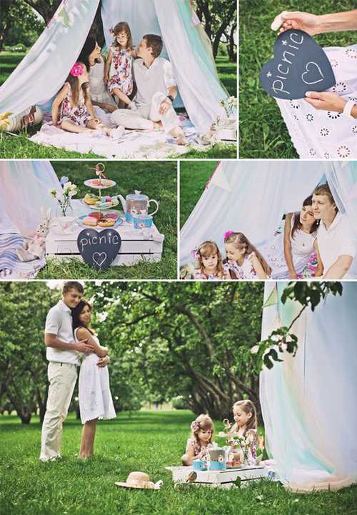 Такое мероприятие придется по душе каждому ребенку. Поход в парк или лес весной или летом уже придает настроение. Зеленая лужайка с домашним пледом, а на нем разнообразные вкусняшки. Можно даже взять по морожному всем и устроить соревнования, кто первый съест или кто дольше будет кушать. Восторг и такую семейную трапезу легко запечатлеть на камеру. Главное, вести себя естественно и много фотографий обеспеченно.