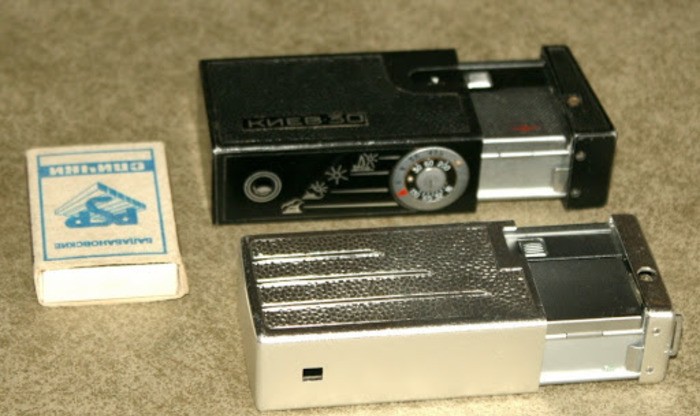 Впрочем, в СССР также были камеры, которые вполне годились для слежки и могли быть приобретены обычными людьми. Например, модель «Киев-30», которую выпускал киевский завод «Арсенал». Эта камера имела небольшие габариты (28 × 46 × 86 мм), и ее легко можно было спрятать в пачке сигарет.