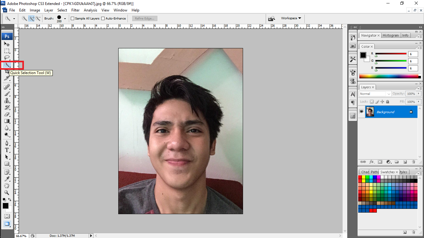 Вы можете попробовать инструмент быстрого выделения, который отлично справляется с выделением основной части изображения, но сделать более точное выделение с помощью этого метода сложно. Проблема в волосах. Пряди волос слишком тонкие и утомительные, чтобы выделять их стандартными инструментами выделения.