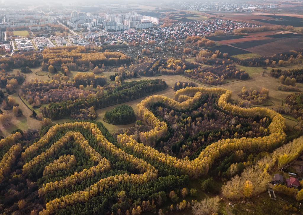 Иногда, когда дрон летит над повторяющимися пейзажами, может показаться, что фотографировать нечего, но это не всегда так. Следите за сценами, которые показывают текстуры ландшафта, например, сосновый лес, как на изображении ниже.