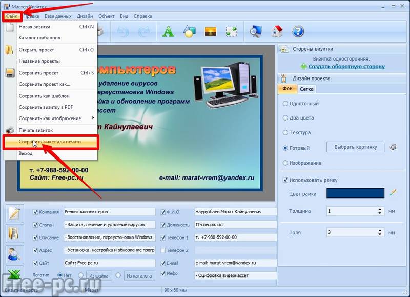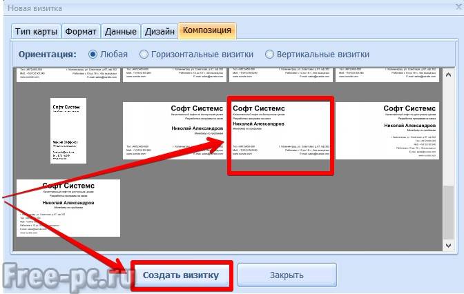 Создание пользовательской визитной карточки в другом программном обеспечении
