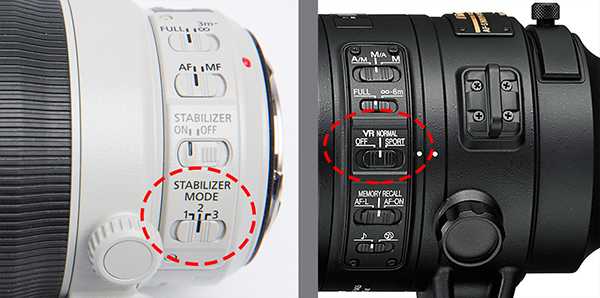 Управление стабилизацией может быть вынесено на боковую часть объектива или находиться в меню, если стабилизатор цифровой.