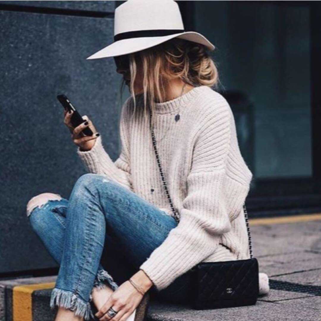 Девушка красиво и модно одета.