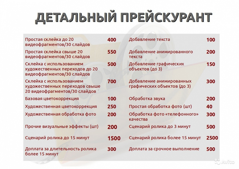 | Монтаж ролика | 5000 | Ролик до 30 минут |